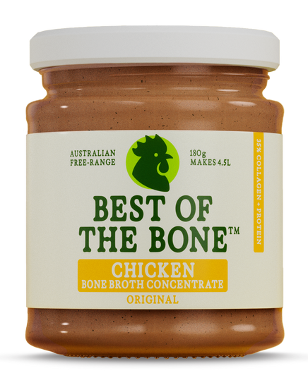 Our Chicken Bone Broth Concentrates are made 100% free-range Australian chicken, plus organic ingredients. Slow-simmered for maximum flavour and nutrient density, they’re rich in naturally occurring collagen protein to support joints, skin, and gut health. A simple, nourishing staple, whether you’re sipping it straight or using it in your everyday cooking. Explore our chicken bone broths below.